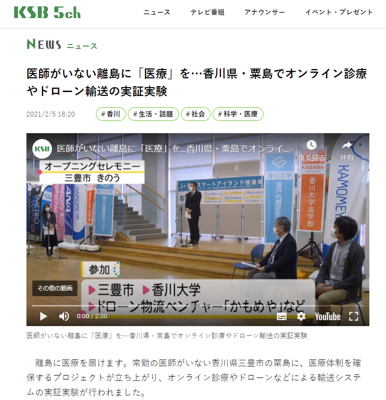 三豊市粟島スマートアイランド実証事業、開会式と実証実験の様子が地元で報道されました。