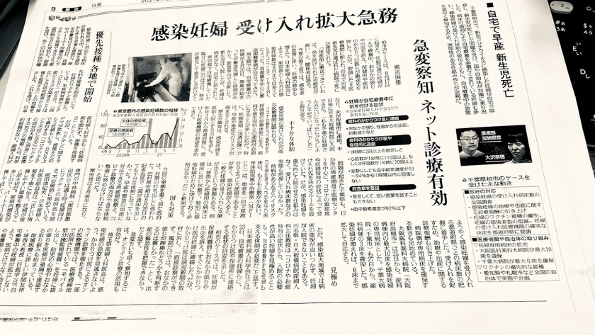 読売新聞の「解説~感染妊婦の受け入れ、、、」に関して埼玉県産婦人科医会の取り組みを記載頂きました