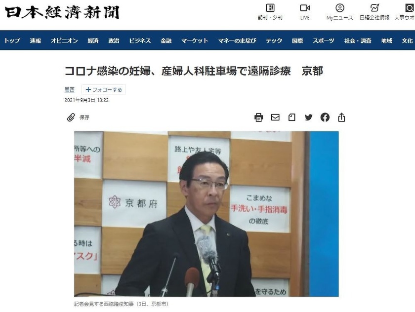 コロナ感染の妊婦、産婦人科駐車場で遠隔診療 京都