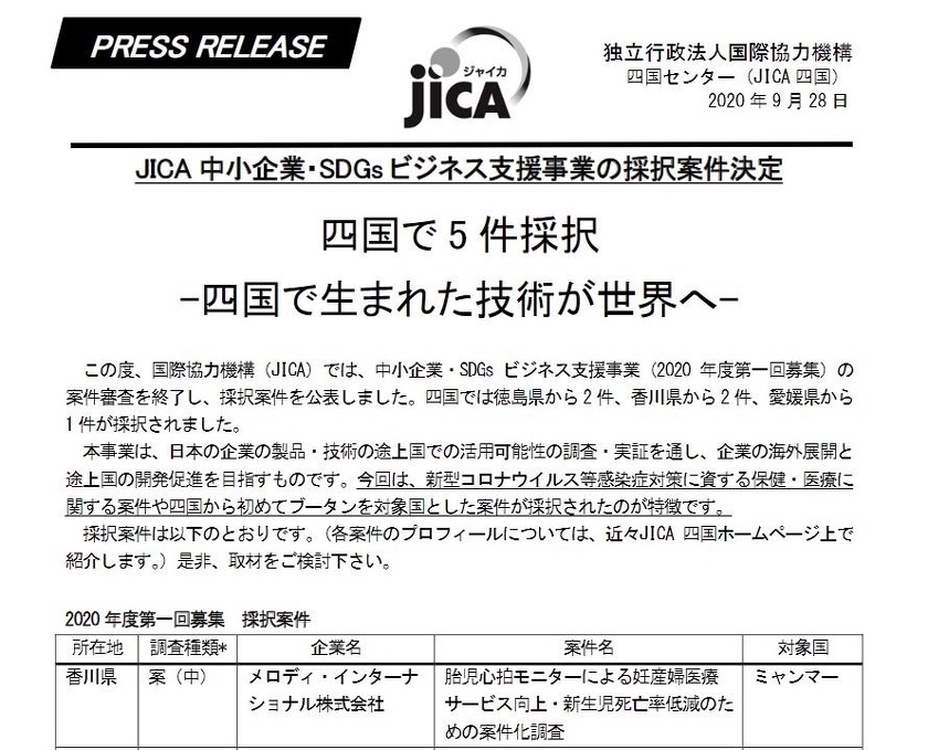 JICA中小企業・SDGsビジネス支援事業に採択されました